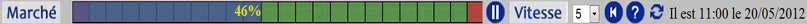 La TimeLine donne de l’information sur l’état de la simulation : la jauge bleue avance progressivement au cours de la simulation et un pourcentage (46% dans l’image ci-dessous) indique le degré d’avancement de la simulation.